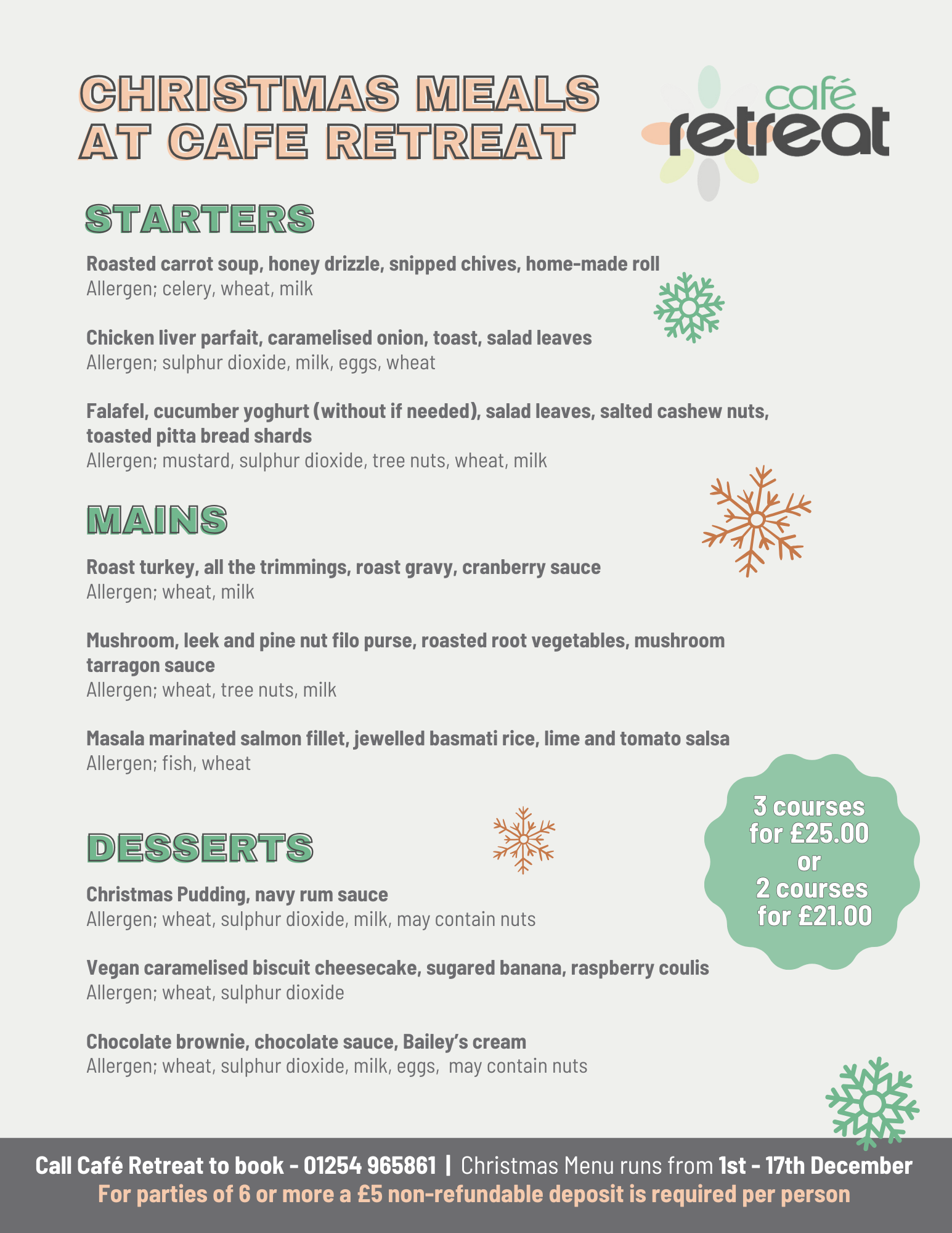 🎄 Booking is essential for Christmas lunches throughout December, please call the Cafe to book: 01254 965861